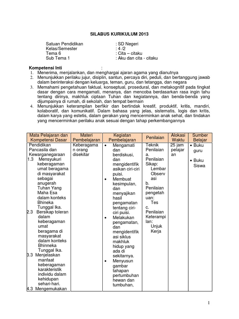Tema yang ada pada silabus ini terdiri dari beberapa tema 1 sampai dengan tema 8. Bertambah keimanannya dengan menyadari hubungan keteraturan dan kompleksitas alam dan jagad raya. Cakupan indikator, materi pokok, pengalaman belajar, sumber belajar dan sistem penilaian Silabus kelas 4 tema 6.doc. Silabus kelas 4 tema 6.